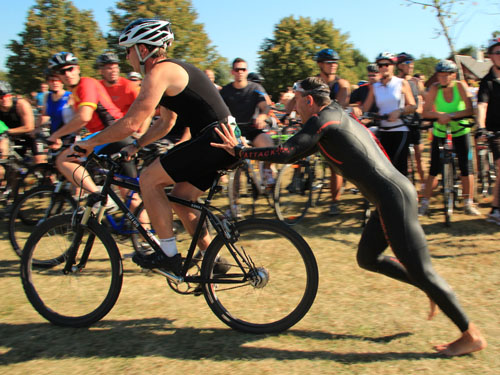 520 m Schwimmen, 21 km Radfahren, 4,8 km Laufen